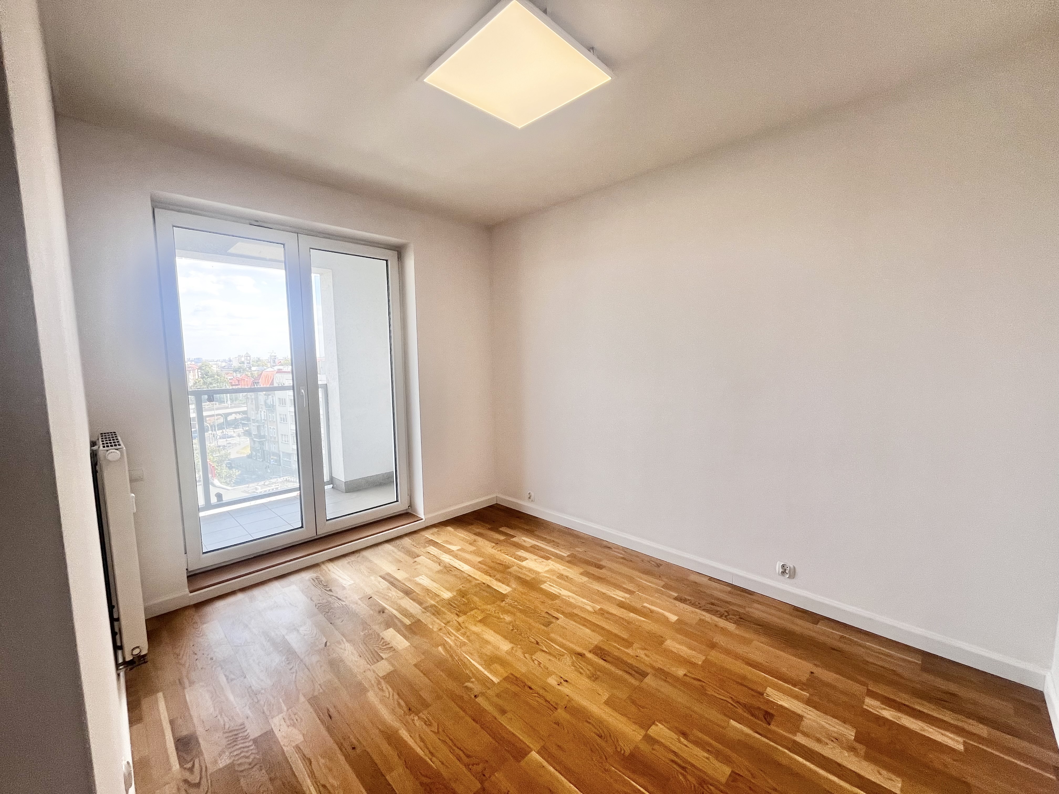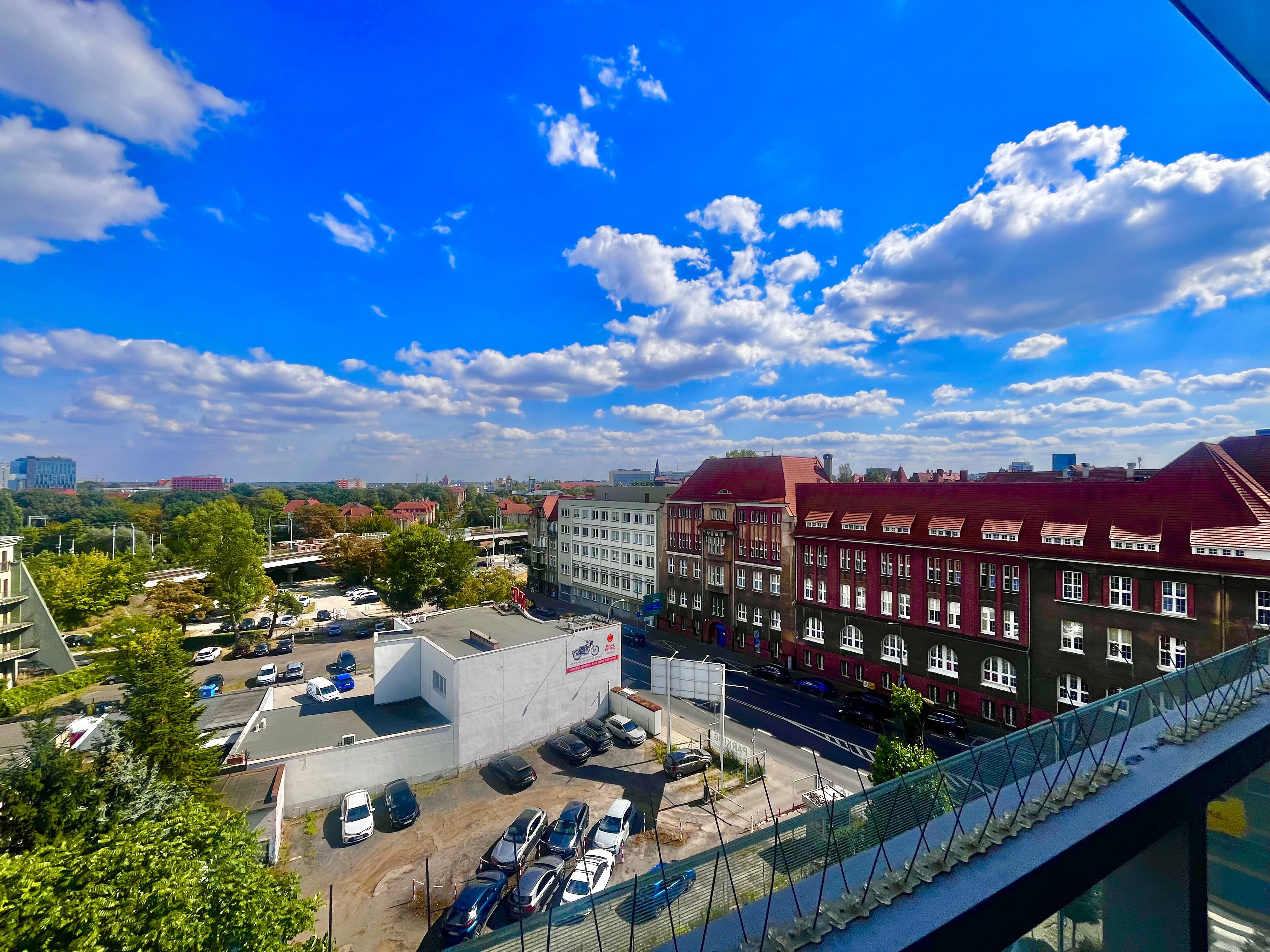 Lokal znajduje się na 6. piętrze i posiada długą loggię ciągnącą się przez całe mieszkanie – z wyjściem z obu pokoi. Okna wychodzą na południe, co zapewnia piękne, naturalne doświetlenie przez cały dzień oraz widok na zieleń i otwartą przestrzeń – pełen komfort i prywatność w centrum miasta.