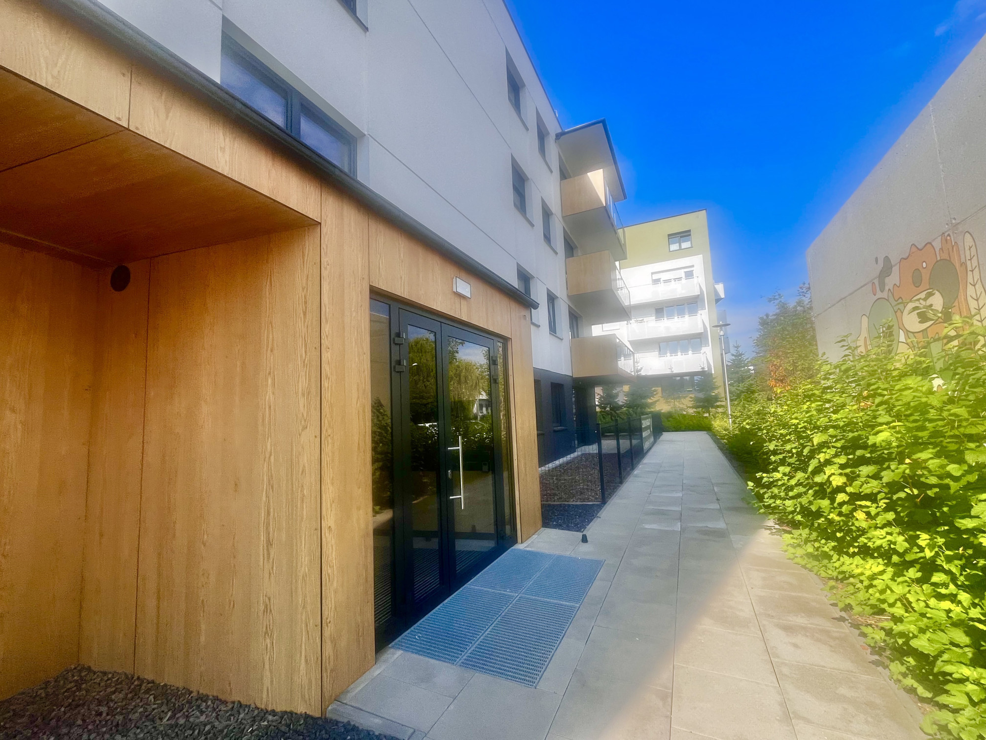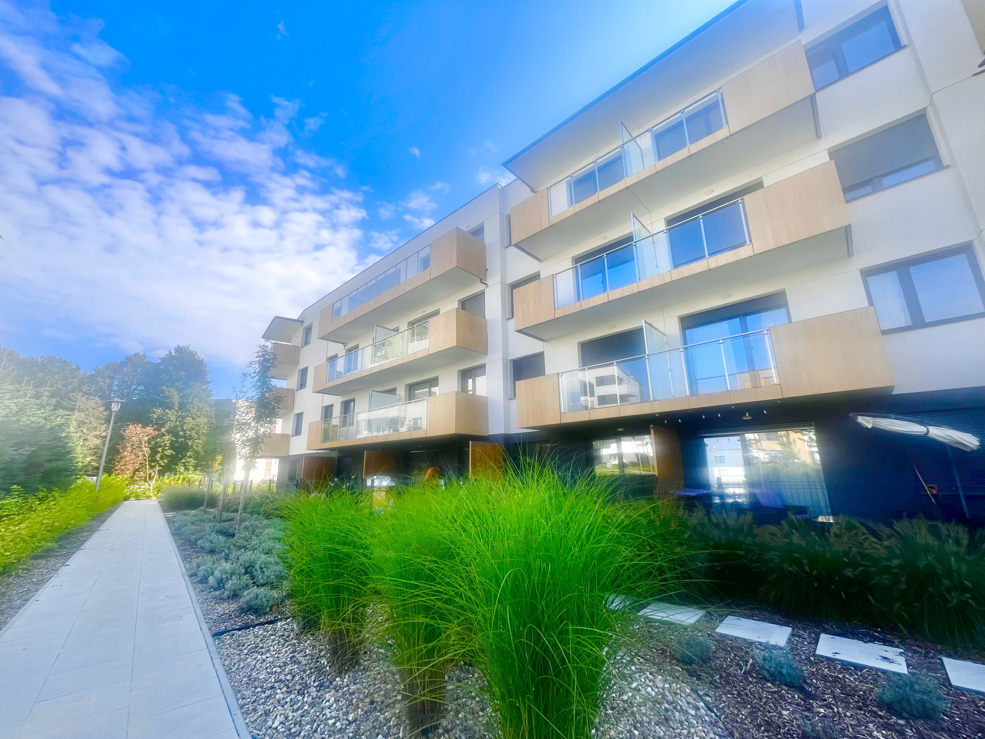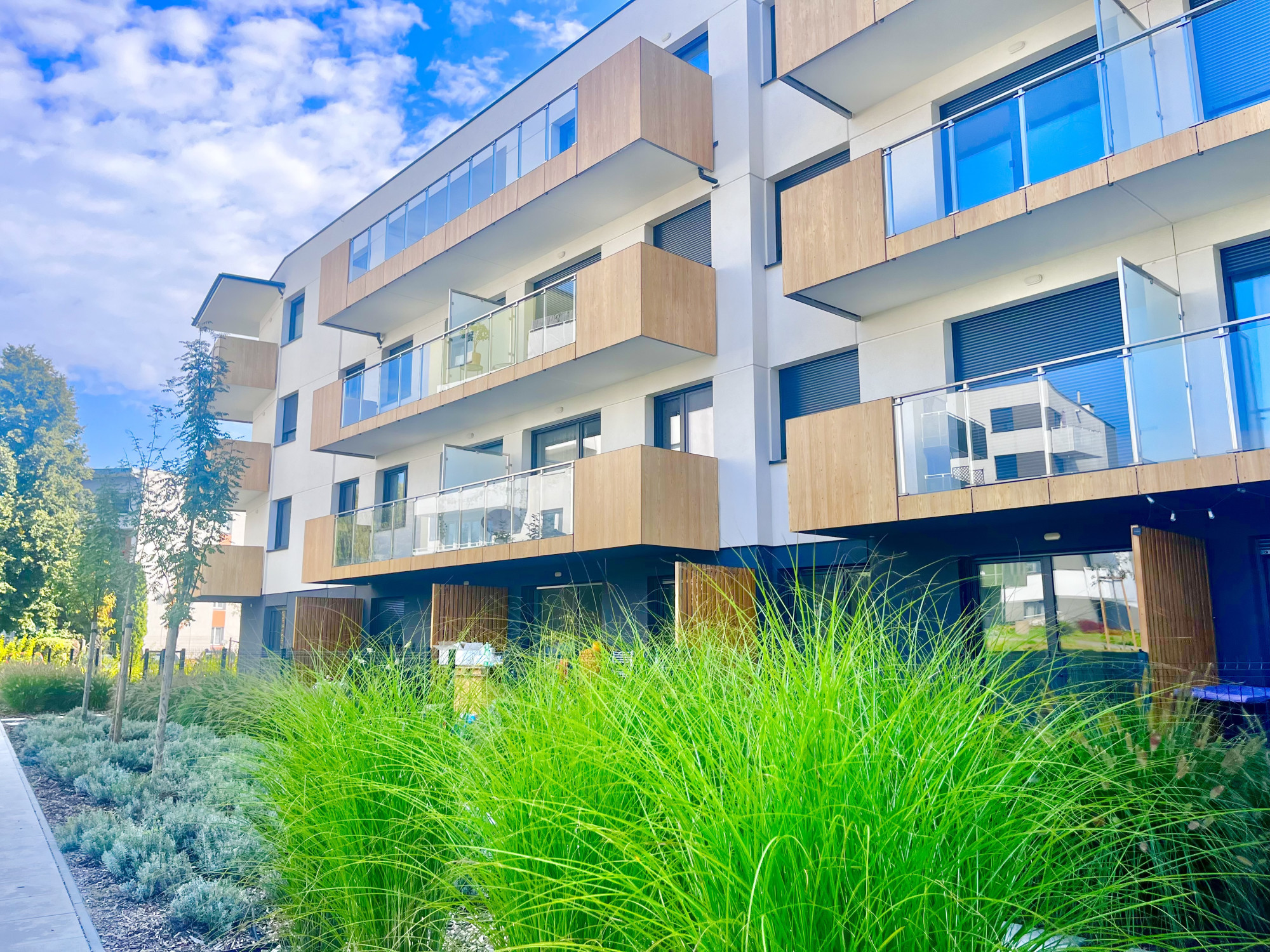 * dużo zieleni, mieszkania od strony południowej cieszyć się będą dużym nasłonecznieniem i pięknym widokiem.